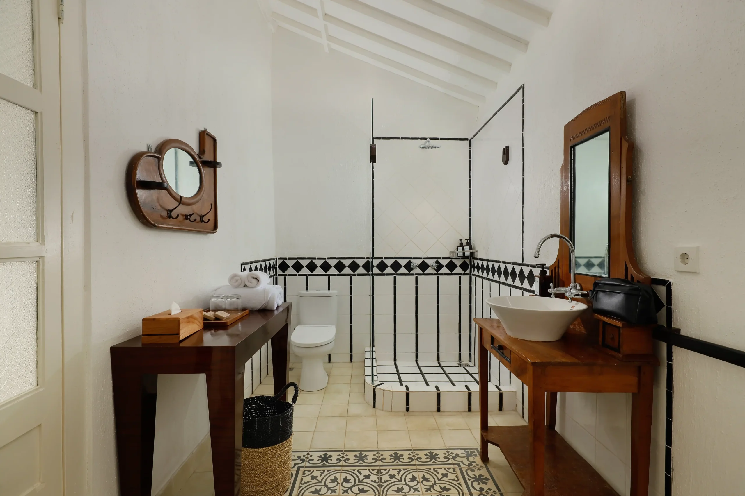 The bungalow is divided into 2 classic wooden buildings with a vintage theme and boasts a remarkable layout that accommodates your desires for both intimacy and leisure. The centerpiece of this luxurious retreat is the magnificent king-size bed in the master bedroom, promising nights of pure bliss and rejuvenation. Nestled beside it are two twin bedrooms, thoughtfully designed to ensure every guest experiences the utmost comfort.