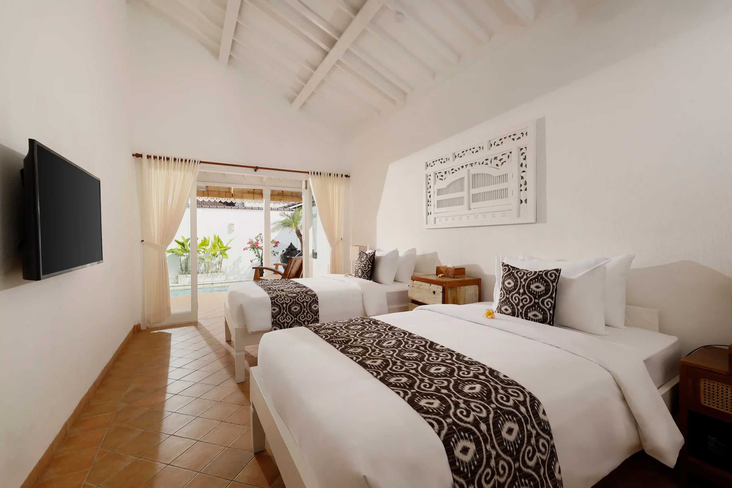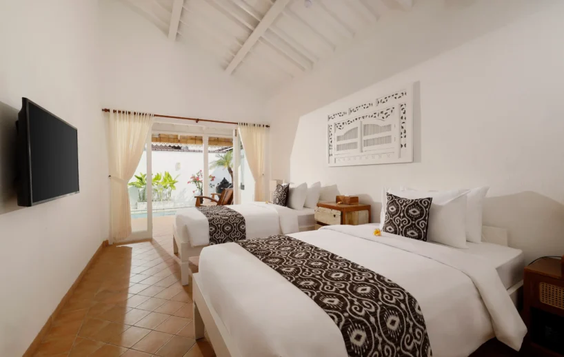 The villa boasts three spacious bedrooms, ensuring ample space for you and your loved ones. The master bedroom is a sanctuary of relaxation, featuring a plush king-size bed, soft lighting, and a private en-suite bathroom that exudes opulence. Additionally, there’s a delightful twin bedroom adorned with quaint decor and designed to create a welcoming ambiance.