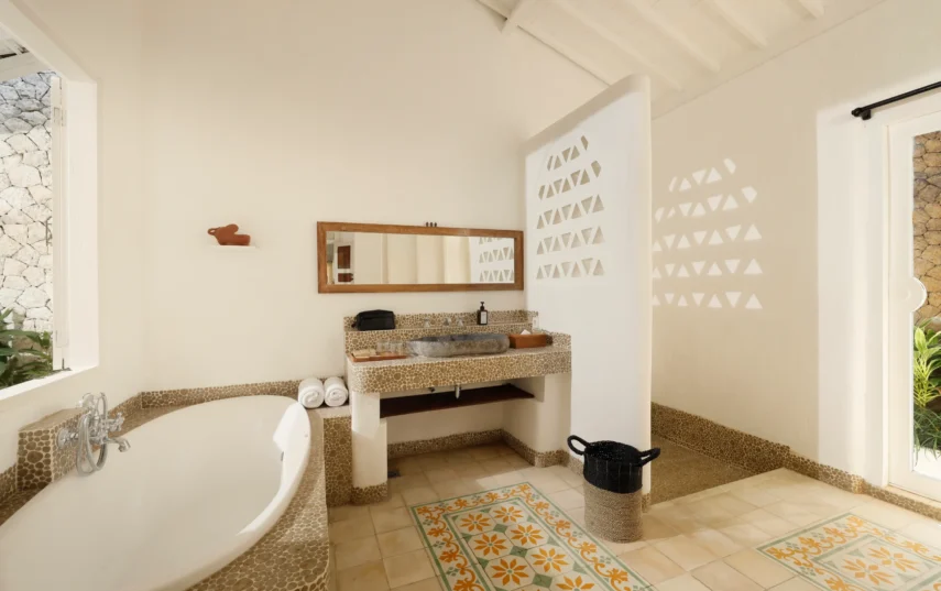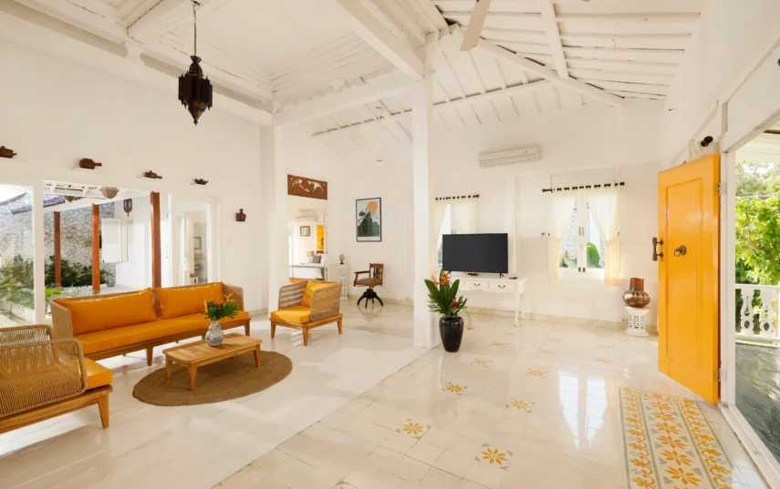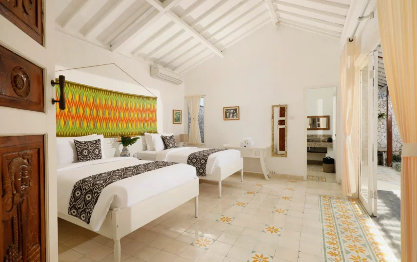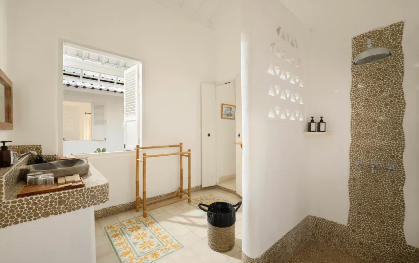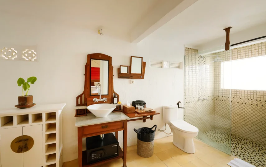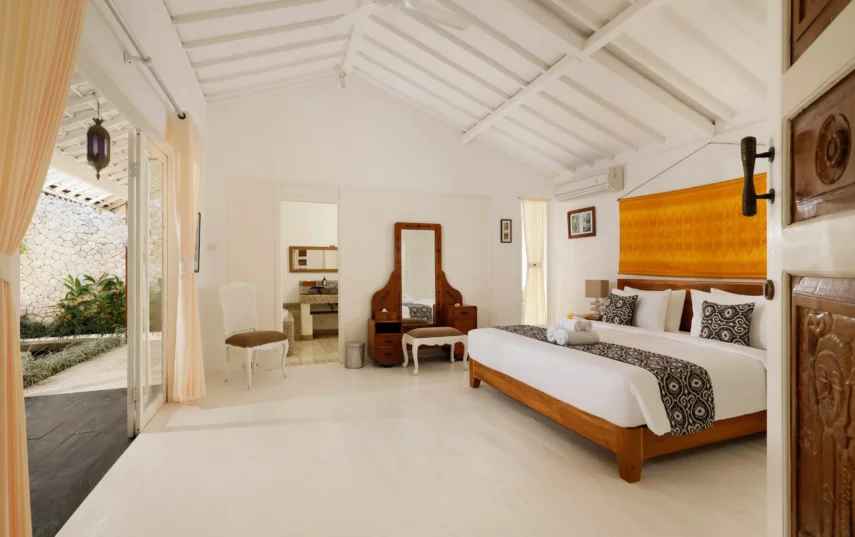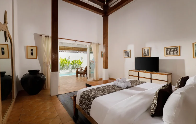 The villa comprises two well-appointed bedrooms, ensuring ample space for you and your loved ones. The master bedroom exudes luxury, enveloping you in a cocoon of tranquility and featuring an en-suite bathroom for added privacy and convenience. Meanwhile, the twin bedroom offers a charming and comfortable atmosphere, perfect for children or friends traveling together.